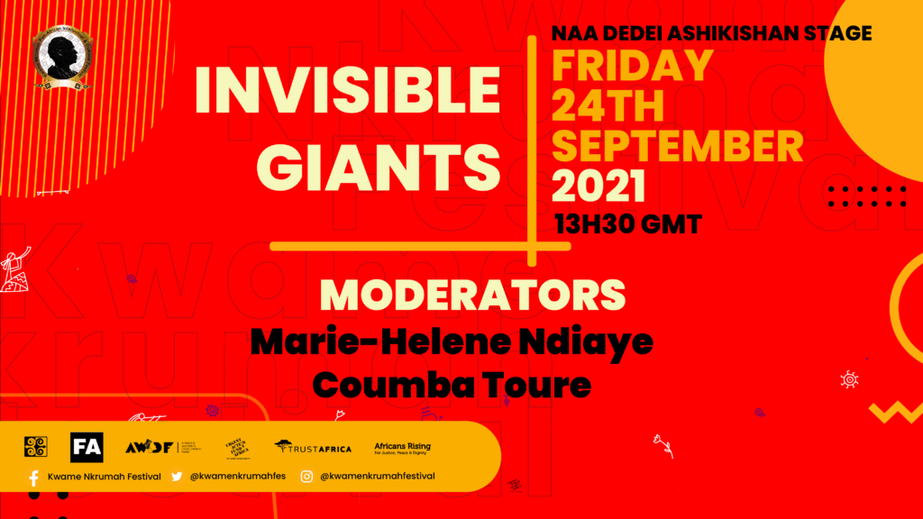 How do Giants become invisible? Are giants not supposed to be visible? The paradox of this title will be explored at this round table session, facilitated by Marie-Helene Ndiaye and Coumba Toure on the final day, 24th of September